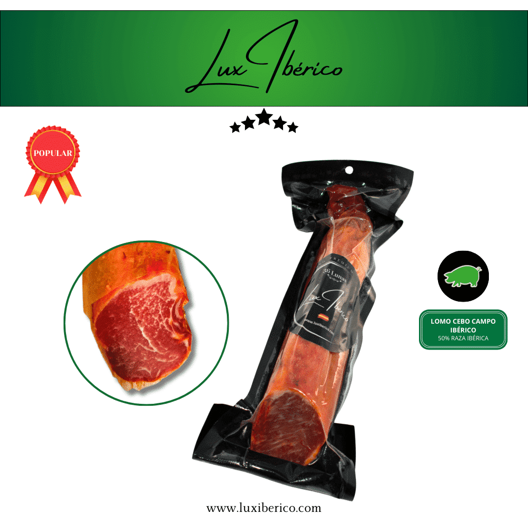 Lux Ibérico est fier de présenter le Lomo 50% Raza Ibérico de Cebo Campo, un produit qui incarne la perfection de la charcuterie ibérique. Cette longe provient de 50% porcs de race ibérique, élevés dans des pâturages idylliques, où ils se nourrissent d’herbes, d’herbes et de céréales, sous le régime d’appâts des champs.
