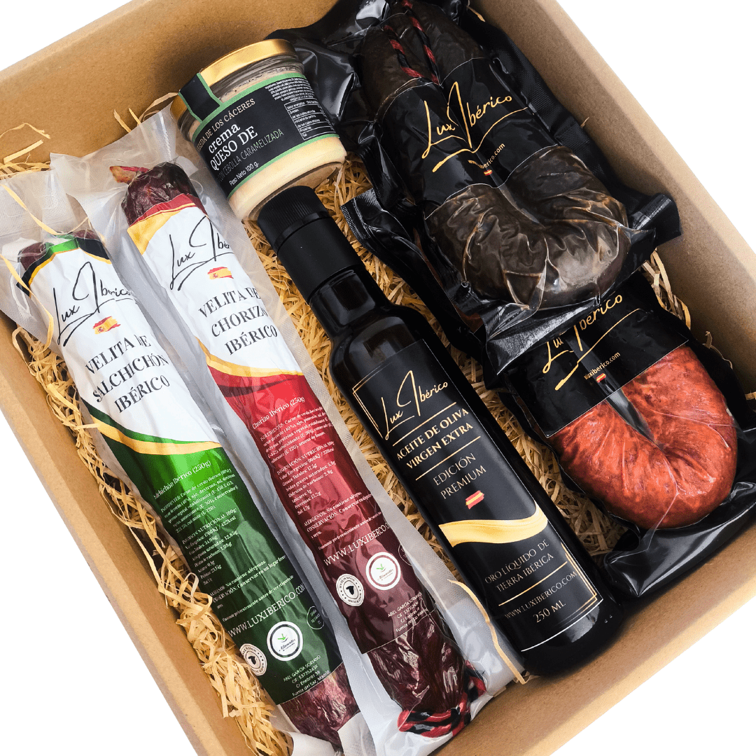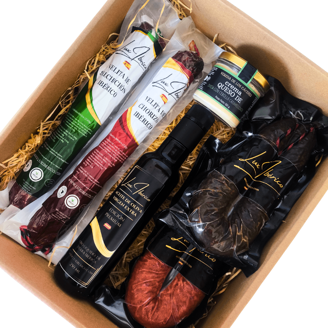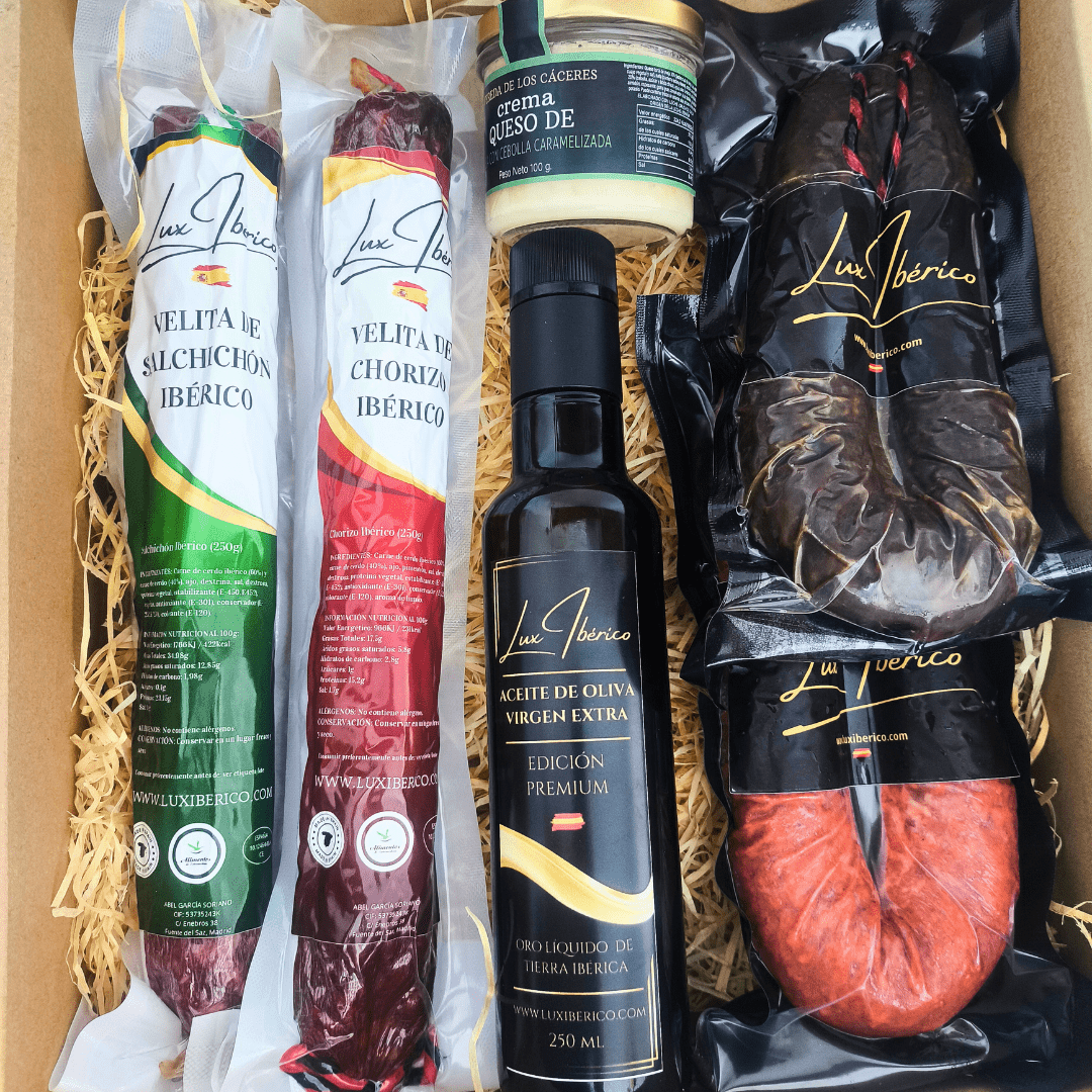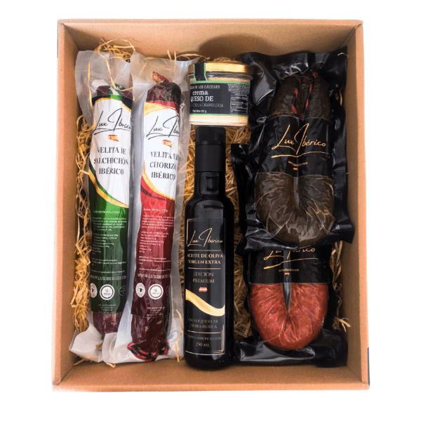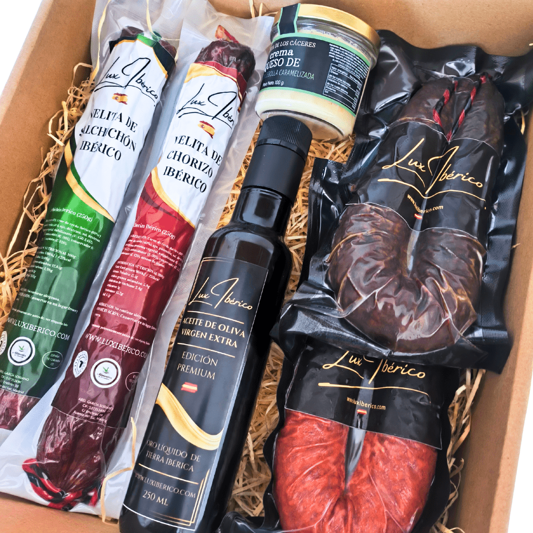 Nuestra Caja de Regalo Gourmet de Lux Ibérico es mucho más que un simple obsequio. Es una experiencia culinaria diseñada para sorprender y deleitar. Este regalo gourmet es perfecto para cualquier ocasión: desde celebraciones familiares hasta eventos corporativos o festividades especiales. Con una presentación elegante y sofisticada, y una selección inigualable de productos ibéricos, esta caja regalo es el detalle que todos quieren recibir.