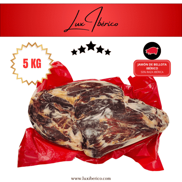 Disfruta de la excelencia del Jamón 100% Ibérico de Bellota Deshuesado “48 Lunas” de Lux Ibérico. Este exquisito jamón proviene de cerdos criados en libertad y alimentados con una dieta rica y variada a base de pienso, cereales, bellotas, hierbas y plantas silvestres, ofreciendo un sabor auténtico y una textura incomparable.