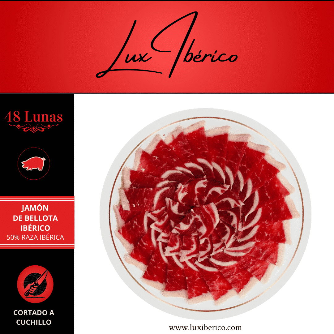 En Lux Ibérico, nos comprometemos con la excelencia, seleccionando cuidadosamente cada producto para asegurar que solo lo mejor llegue a nuestros clientes. El Jamón 48 Lunas – 50% Raza Ibérico de Bellota es una prueba de este compromiso, representando la perfecta armonía entre tradición y calidad. Invitamos a nuestros clientes más exigentes a descubrir este tesoro culinario, que promete convertir cualquier momento en una ocasión inolvidable. Haz tu pedido ahora y déjate llevar por la magnificencia del verdadero sabor ibérico.