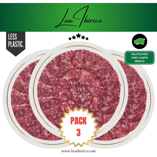 Cada sobre de 80g contiene lonchas de salchichón ibérico cortadas con la precisión que solo los maestros charcuteros de Lux Ibérico pueden ofrecer, asegurando una experiencia gustativa excepcional. Este pack de 3 sobres es perfecto para compartir con amigos y familiares, ya sea en reuniones casuales, como parte de una tabla de embutidos gourmet, o como un tentempié de calidad superior.